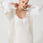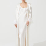 رداء النوم المسمى The Moon، والذي يظهر في مجموعة İpek Kıramer للعام الجديد، مكتمل بقماش حرير مستورد خصيصًا من إيطاليا وإكسسوارات Plume d'autruche الفرنسية.