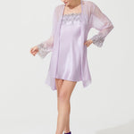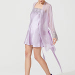 رداء قصير من الحرير الزن باللون الوردي