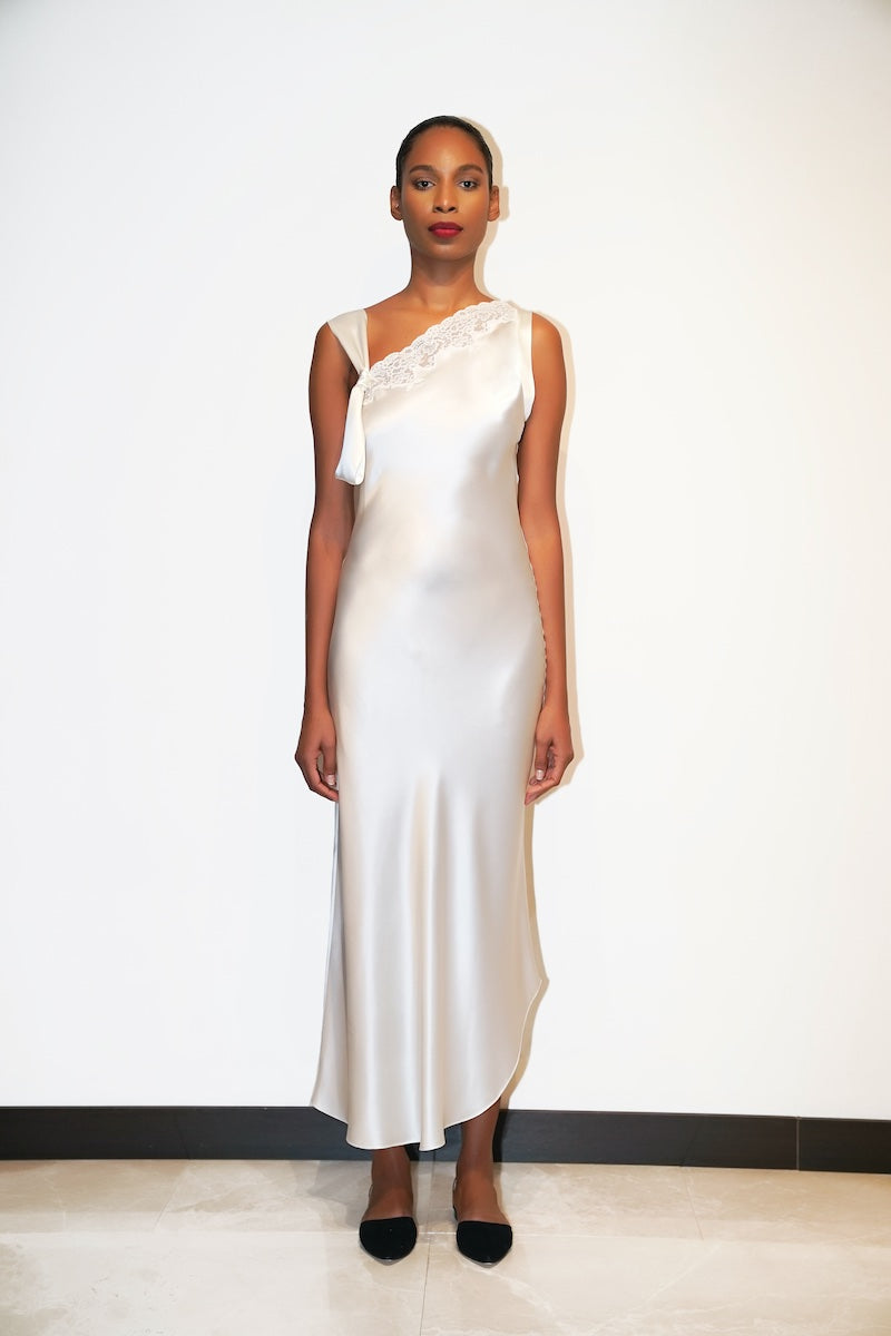 هذا الموديل، الذي سيكون من بين كلاسيكيات Ipek Kıramer، سهل الاستخدام، مع أولوية الراحة والأناقة. تم تصنيعه باستخدام قماش حريري 100% ودانتيل حرير قطني فرنسي، كل قطعة مصنوعة بنسبة 50% يدويًا و50% بواسطة آلات.